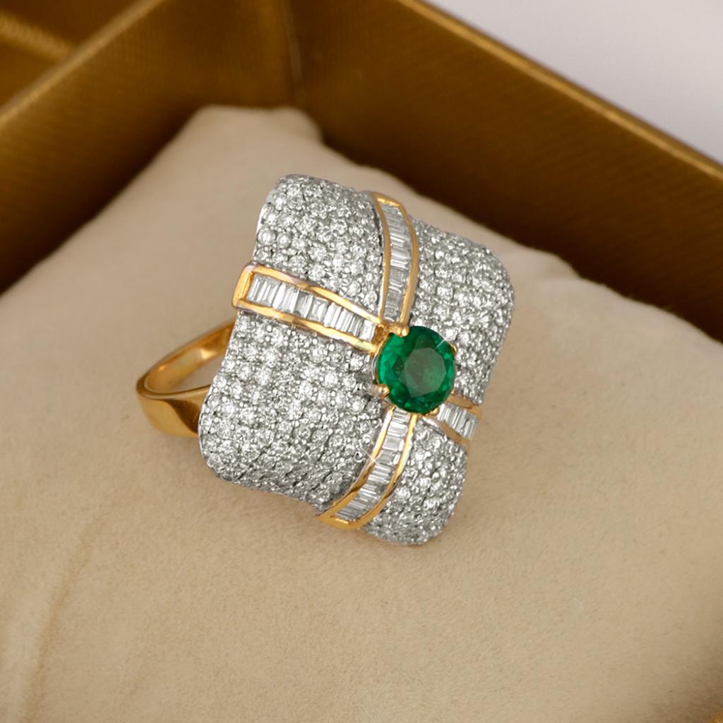 India Diamond Rings 18k Gold Diamond Ring with Green Stone